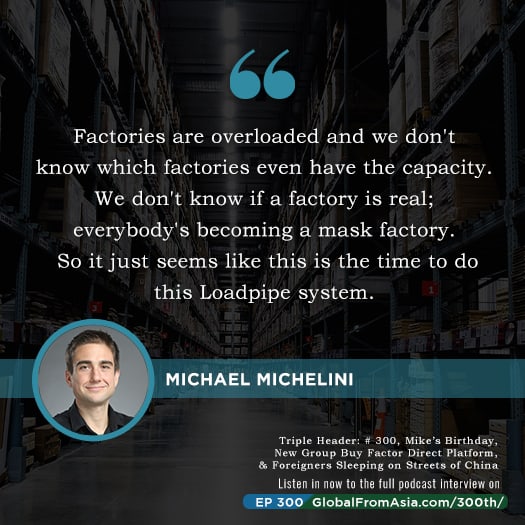 [00:07:23] So this is a double header podcast episode 300. Launching loadpipe.com platform for small B2B orders to be consolidated to get factory direct pricing, specifically starting with this covert 19 supplies. But then hopefully the plan is to expand more. And then after that we will have Russell Morgan sharing about his getting, sleeping on the streets of his apartment building and sleeping in a bench in the airport, going and now he’s back in LA America.