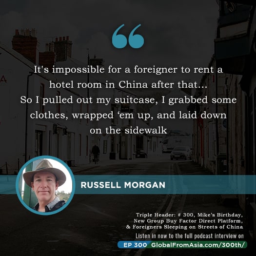 Later in the show we bring on Russell Morgan, a business man I have known for seven years or so. He mentioned to me he had to sleep on the streets outside his own Guangzhou apartment complex, and then flew back to America – where he also was denied entry to the Guangzhou hotel airport and had to sleep on a bench in the airport. Really insane times, and he shares his story on the third part of this epic episode 300.
