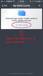 Step 3: Add a debit card or credit card issued by Chinese Mainland banks.