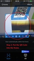 Step 2: Put the QR code into the frame and it will automatically jump to the merchant’s payment page. (If the QR code is on a picture in your phone, you can tap “Album” on the top right corner to scan it.)
