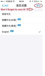 Step 1: After installing Alipay, tap the App and you can see the welcome page. If the language appearing is not the one you are familiar with, please tap “语言” on the top right corner to change the language that you prefer. Right now, Alipay is only available in 3 languages: Simplified Chinese, Traditional Chinese (Hong Kong and Taiwan) and English. Then select languages and tap “保存” to save it.