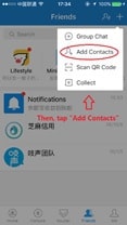 Step 2: Tap the “+” button on the top right corner. Then tap “Add Contacts” to add a friend.