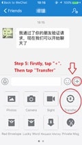 Step 5: Wait for your friend to accept your friend request. After receiving his/her message, tap the “+” at bottom right corner and then tap “Transfer”.