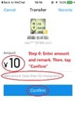 Step 6: Enter the amount of money (required) that you want to transfer to your friend and add your remark (optional) to continue. Then, tap “Confirm”.