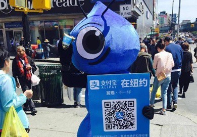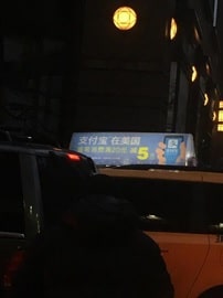 A: Yes, but it may be a little difficult for you to find a merchant in other countries. Right now, Alipay is trying to spread its influence throughout the world. However, its localization seems not so active. The following 2 pictures were photographed in New York. It is interesting to find out that Alipay’s advertisement in New York only contains Chinese characters instead of English ones. (As far as we know, the condition in Tokyo is similar to New York as well.)