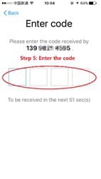 Step 5: enter the 4-digit verification code you received from SMS.