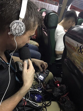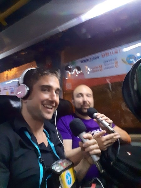Photos Recording This Podcast on the Bus to China