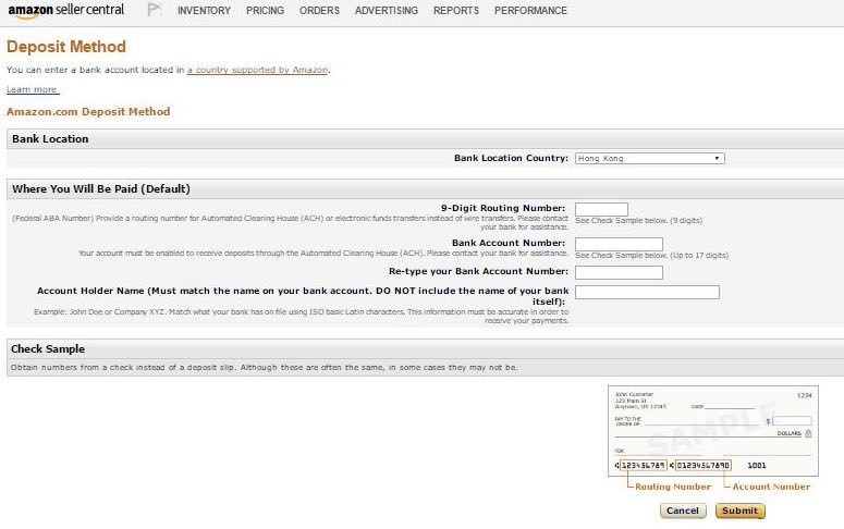 While there have been people saying that Amazon won’t wire to Hong Kong – I have had readers (as of October 2016) tell me that they can add their HSBC Hong Kong business bank account to their account directly.