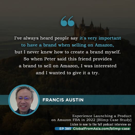 **[00:03:46]**Can you believe it’s already in quarter four? And we thought it is a perfect time to invite Francis and Peter to the podcast today to share the experience as well as to insights of launching a product on Amazon in 2022 and working with us at GFA’s Blimp Method Course Program. We are here to introduce Peter and Francis.