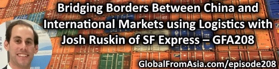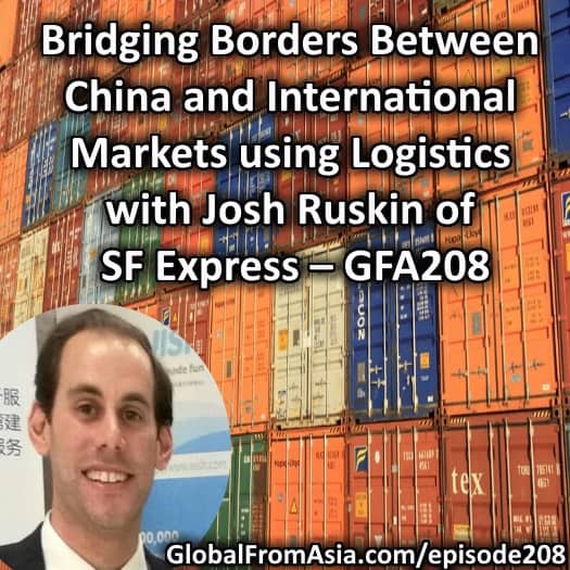 Mike: Happy New Year. Happy 2018 everybody. I’m in the midst of family meals and other things even I’m in China. It’s everybody, I mean the dates are the same anywhere in the world. And I have to apologize for last week. I don’t remove some of the F words in my interview and I quickly got noticed that me and my editor and my content producer are all missed that and I feel kind of embarrassed. I know that they’re talking about kids and my kid’s here and I know some people have kids listening. So we edited that as soon as we could. But if you download early and when it went live in episode 207 you’ve heard some of my more emotions in there. I told you guys it would be interesting interview with me and that was in a higher state. So anyway I apologize about that, a few people told me about it. But it will be edited going forward so I want it those first few days had it. And now let’s talk about this week’s show we’re getting quality up and the content back going. And we have episode 208 here www.globalfromasia.com/bridging-borders/. Josh Ruskin from SF Express, Shun Fong one of the top courier companies in China. I know in Shenzhen, I’ve always recognize their brand since I first come here in 2007, I remember SF Express deliveries. A lot of times per packages overnight deliveries anything really important. So it’s great to have him here. He was in our first Cross Border Summit 2016 and he was also supporting us at the Cross Border Matchmaker and been doing amazing things for the Cross Border E-commerce industry here. They focus on importing into China as they have their network here but they also have overseas logistics as well. So I know it’s very important to have your logistics partner correctly setup when you’re in in e-commerce business or in trading or import/export. I know a lot of our listeners are always asking for more logistics content. So, Josh give us a great overview of tough processes as you start in growing your e-commerce business and also some of the ideas of why things are the way there are. So without further adieu, let’s check it out and always we have the show notes at www.globalfromasia.com/bridging-borders/. Let’s tune in and now I have time go back to my kids.