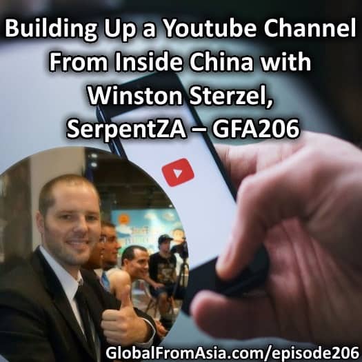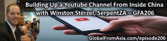 We are interviewing SerpentZA (Winston Sterzel) – China’s first vlogger and an all around amazing guy. He has been keeping up consistent video creation dating back to 2006 in China, riding the filtered Chinese internet enough to keep his subscribers happy and growing his fan base. We get him on the Global From Anywhere TV show (and audio podcast) to share his journey making a top Youtube Channel. We had some fun run ins with Chinese mall security and had to move our recording position – keeping this guerrilla style shooting on the Chinese streets at a bus stop! If you want to hear our first podcast with Winston, check out episode 78 of Global From Anywhere podcast.
