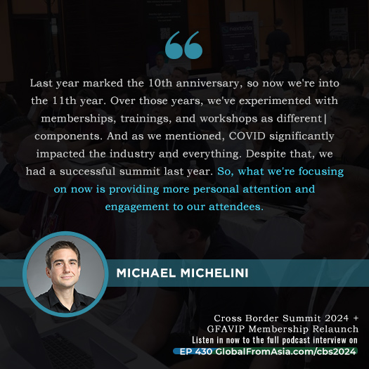 We really have a lot of things to look forward into in terms of the cross summit, this 2024 [00:12:30] best or more, more better than what we had last year. And that’s actually good. And also, I just wanna ask you some couple of questions as well, because aside from the Cross Border Summit, we also have some new things going on, like our GFA training and, and, and membership.