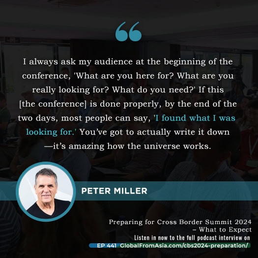 [00:00:00] Episode 441 of Global from Asia Podcast, we are talking a little bit of some what’s expect at the Cross-Border Summit with our mc Peter Miller. Let’s tune in today. Welcome to the Global from Asia Podcast, where the daunting process of running an international business is broken down into straight up actionable advice.