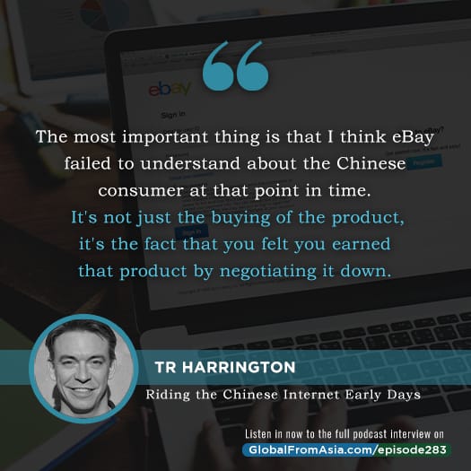 [00:23:00] for Taobo, more so than changing the way the model was done and buying a without the auction going up was actually at the introduction of chat into, into, into the transaction. Because then you could actually have a negotiation. Exactly. Because the most important thing that I think eBay failed to understand about the Chinese consumer at that point in time is. It’s not just the buying of the product, it’s the fact that you felt you earned that product by negotiating it down. Right. And if the price was fixed and you couldn’t do that, it sort of hurt the Chinese heart. Right. The idea, I didn’t get any discount. I didn’t move that price down. I failed as a Chinese person. Right. I didn’t, I didn’t do that. So I think, yeah, that’s a huge localization issue that I think, uh, eBay failed to