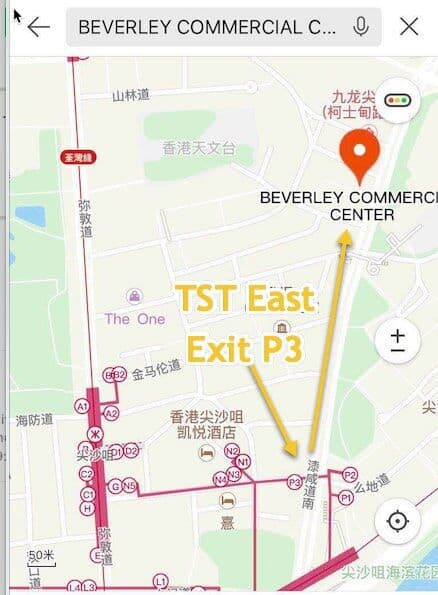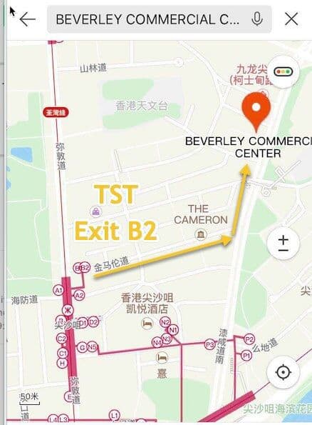 Listen for stop number 14, called “Middle Road, Nathan Road“. Get off the bus, and then about a seven minute walk to Beverly Commerce Centre.
