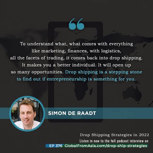 Thanks a lot for coming on to the show Simon! We appreciate you sharing strategies and perspectives for drop shipping!