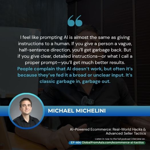 (00:00) Episode 464 of the Global from Asia podcast talking about AI and e-commerce, some hacks, some real life strategies I’m using to accelerate our Amazon and e-commerce businesses. So, let’s tune in today. Welcome to the Global from Asia podcast, where the daunting process of running an international business is broken down into straight up actionable advice.