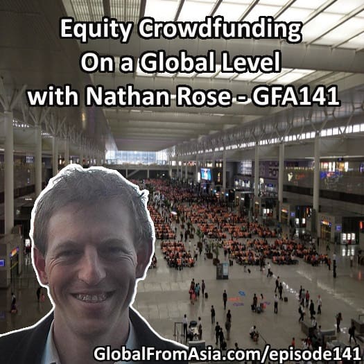 So this week we have Nathan Rose – an equity crowdfunding expert giving us some tips on how we can raise money for our startups and businesses. He gives some insights in various places around the world. Plus, I am happy to announce he is about ready to launch his first book, and when we recorded it he was just getting underway. If you want to learn more about his book launch – go to globalfromasia.com/nathan