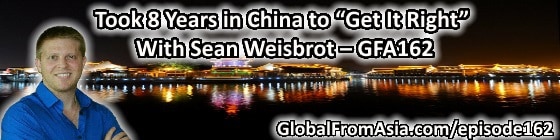 And now for this week’s show – Sean Weisbrot is a “need to know” connector here in Shenzhen and throughout China – hosting events, moderating Wechat groups, and he’s here with a fun topic we did during Chinese new year – why the last 8 years were a waste and the last 6 months he finally is getting it right – some interesting insights and let’s tune in! And, as always – show notes are on – Claire – wanna read it off – www.globalfromasia.com/getting-it-right-in-china/