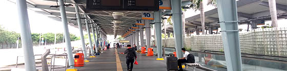 They have moved the bus customer service counter to the underground, so you’ll take the elevator down just before the Airport Express. Down the elevator take a right and then you’ll see the bus terminal. On the right side there are about 10 counters of different companies. The prices are all the same, the main point is you want to go to the correct border checkpoint.