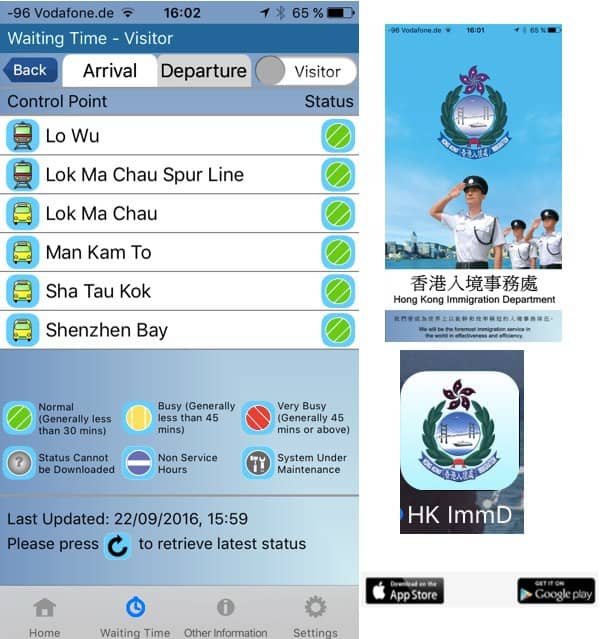 And then I found the (new ?) App from Hong Kong Immigration Department, where you can look after waiting times at all borders to / from China Mainland.