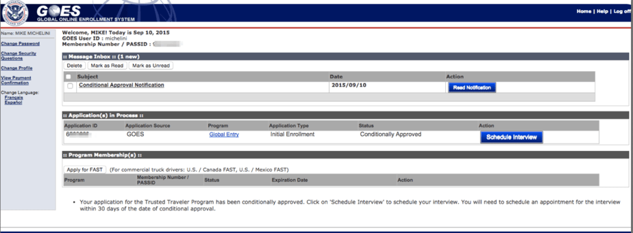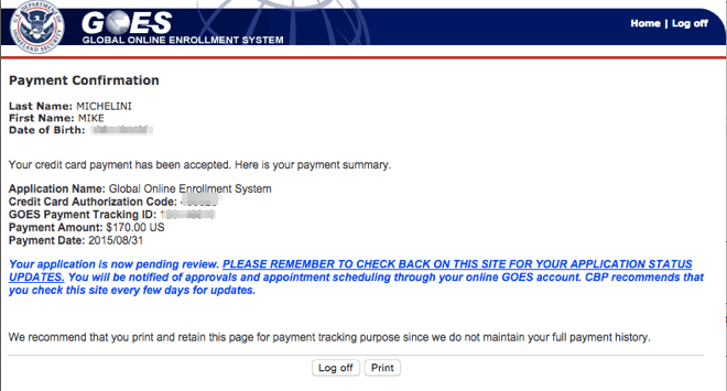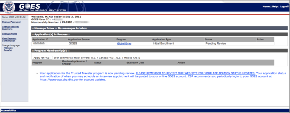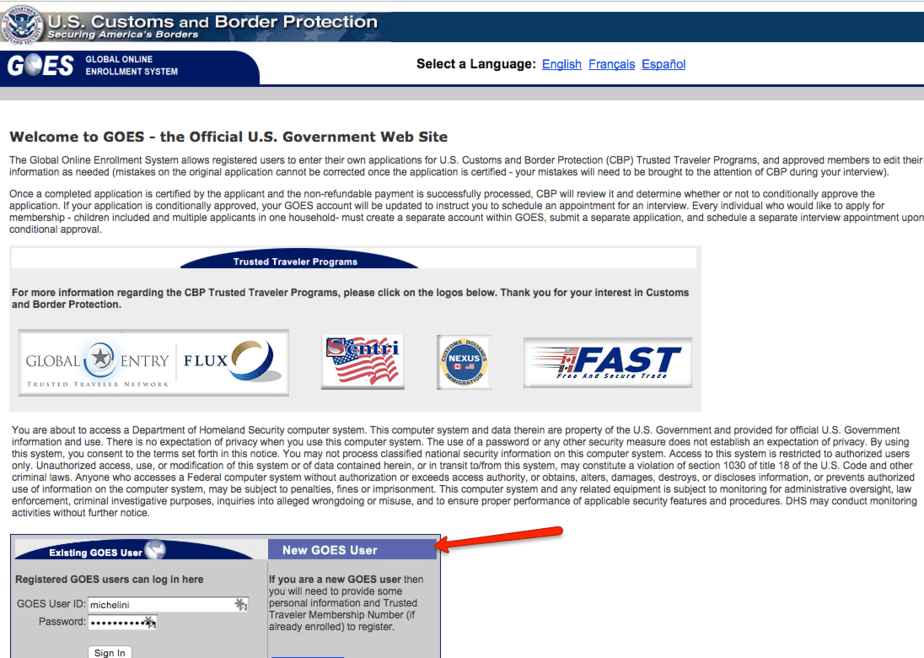 GOES – Global Online Enrollment System. This is the online system for applying and managing your frequent traveler programs.
