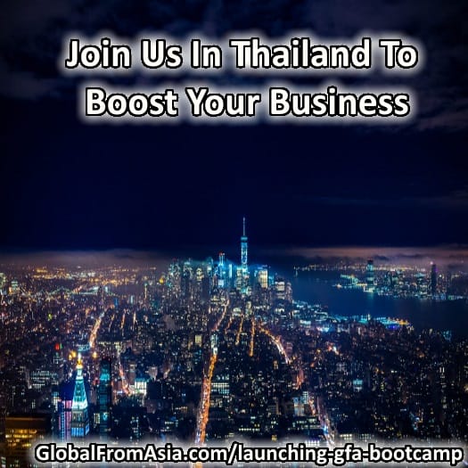 The Global From Anywhere bootcamp (GlobalFromAsia.com/bootcamp) is an intensive, 7 day on-site program to build and scale your global E-commerce and FBA business to the next level.