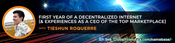 [00:00:00] So 346 of globalfromasia.com. We’re still a.com, but we’re still talking about the decentralized internet. We got the CEO of namebase.io, Tieshun. It’s a great one. Honestly, I just finished it. We’re jamming us into this three part series of handshake and dWeb in the Global from Asia show. And let’s tune in.