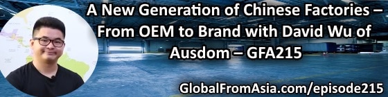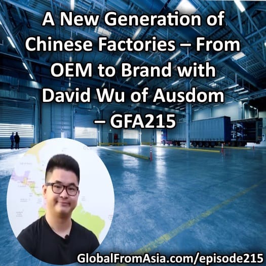 Now, for today’s show – we have David Wu – a second generation family factory owned business. David studied overseas and is a returnee to China. When he talked to his dad, he convinced him to invest in making their own brand – Ausdom. Somewhat of a challenge and a game in a way between father and son, seems the risk / investment of making their own brand has paid off.