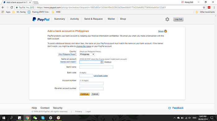 Be sure that the name of your Philippine account matches your PayPal name. If the name varies, it can be used as a ground for your bank to return the money to PayPal. If this happens, a return fee, which is currently set at P250.00 as of writing this guide. For this reason, you should not use another person’s account when linking an account number to your PayPal.