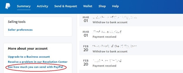 - Go back to Account Summary, scroll down and click “See how much you can send with PayPal.”