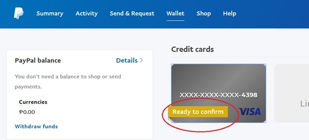 - Log back in to your PayPal account, click Wallet and click Ready to Confirm.