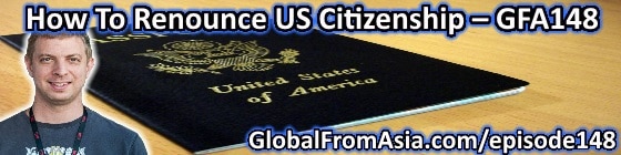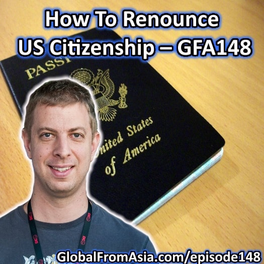 Therefore, I thought it would be a time to bring up a show I’ve been meaning to have on for quite some time – renouncing your US citizenship. Olivier Wagner comes on to discuss it, and during the interview I get a little emotional…. I’ll explain after the interview – also this is episode 148, so you can get the show notes at globalfromasia.com episode148