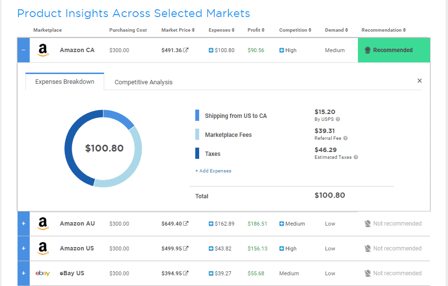Understand the influence of your expenses to your income. By providing the shipping fee, marketplace fees, PayPal fees, and market of interest taxes, you’ll be able to get a better view of how the expenses will affect your revenue.