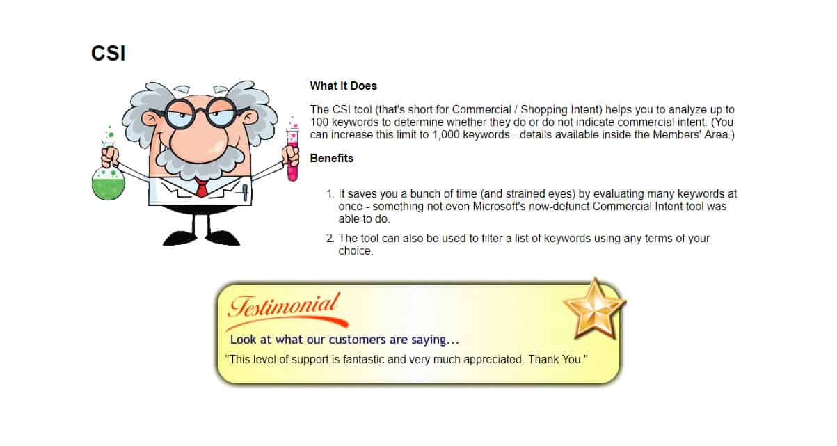 The tool helps analyze 100 keywords to determine whether they indicate a commercial intent or not.