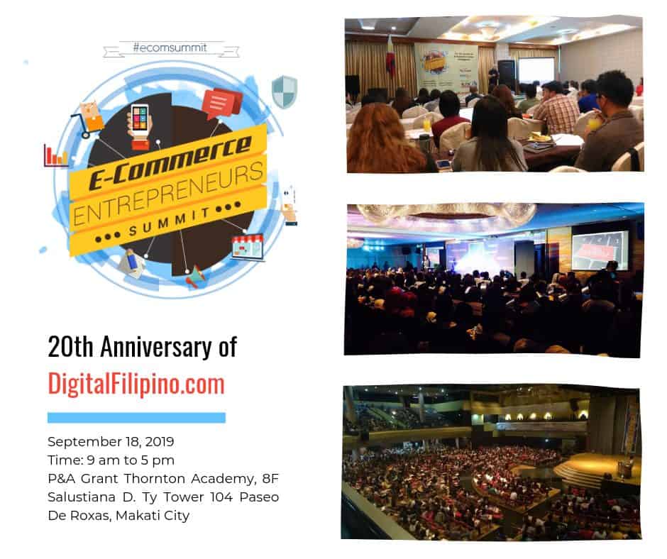 Finally! Celebrating 20th year of DigitalFilipino.com with the E-Commerce Entrepreneurs Summit Manila this September 18, 2019 in collaboration with I-Metrics Asia Pacific Corporation.