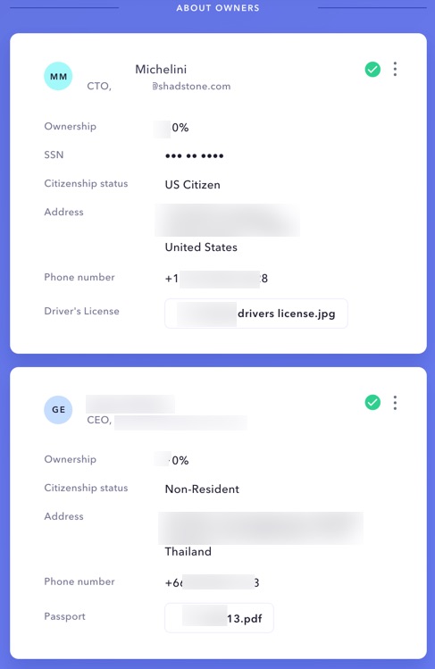 If you don’t have all your shareholders’ personal information, or you want them to be aware that they are submitting it, you can give the link that they will provide, to those shareholders to directly login and upload their passport and answer their own questions.