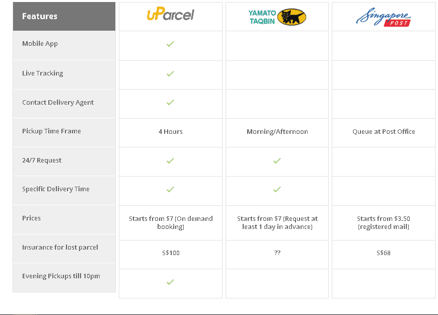 Here is uParcel’s rate that you can avail of:
