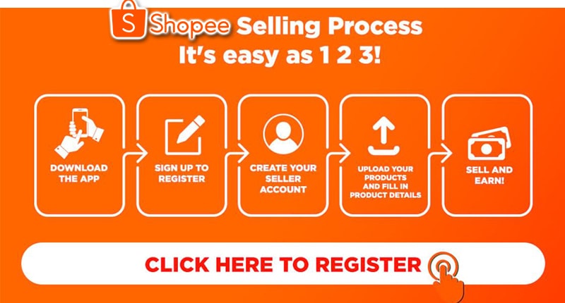 Littered across the site, you’ll also be able to see a button that says, “Click Here to Register”. Other Shopee sites will have the button read, “Start Selling on Shopee Now!” You can’t miss it! Go ahead and click that to proceed to becoming a seller on Shopee.
