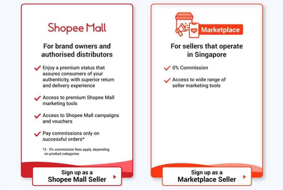 In other Shopee sites, you will need to decide on whether you will be signing up as a Shopee Mall Seller or as a Marketplace seller. The differences between the two can be seen below.