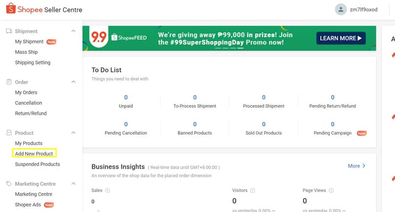 With your new Shopee account, you can start selling! Return to your Shopee site and click on the “Seller Center” button located on the top left part of your screen.