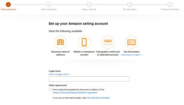 Embarking on your Amazon FBA journey requires a seamless registration process, a task easily accomplished in under an hour. To initiate this journey, visit the Amazon Seller Central account setup page. The subsequent steps, illustrated below, guide you through five essential stages: