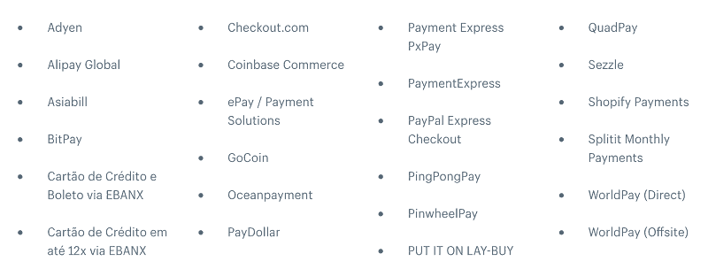- Shopify has a Payments Providers area where you can manage your store’s payment methods. And, as Shopify supports over 100 payment providers all over the world, you are somehow assured that your store can accept whatever payment method your customers prefer.