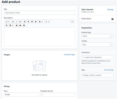 - Manage Inventory – Shopify has a user-friendly interface wherein you can upload your products in seconds, organize products by category or by different variations, track stock counts and pending orders, and add multiple images for your products.