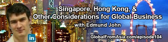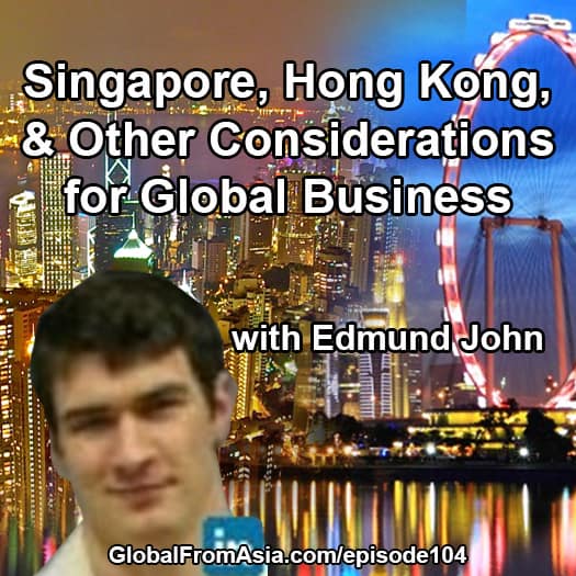 K enough of the soft stuff, this week’s show we have a good one – comparing Singapore to Hong Kong, as well as other options for where to setup your international business. Edmund John is a wealth of knowledge on international incorporations and a friend of mine for years. We dive right into the interview so I’ll read off his bio here then we’ll get into the show