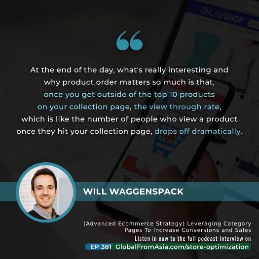 [00:00:00] Episode 381 of Global From Anywhere podcast. Today, we are talking about shopping cart optimization with category pages. It’s a fun one. And we are gonna go in right now. Welcome to the Global from Asia podcast, where the daunting process of running an international business is broken down, into straight up actionable advice. [00:00:26] And now your host, Michael Michelini. How’s my hair? I always wanna just do this audio only. But, the wife is saying Chinese people like video. And I don’t think any foreigners, you know, Westerners are watching this on YouTube. We got like no views on YouTube. It’s all on iTunes, but you know, I got the face here. [00:00:49] I fixed my hair. The background’s all crazy. I’m moving, man. I’m moving. All right. I know some of you listeners have been finding me, asking me, when is the going away party in Shenzhen and I [00:01:00] don’t even know man, like it is, it is crazy. And I’m going to the exit bureau for the government and get my family outta here. [00:01:09] So I, I don’t really wanna say too much about it, but if you’re on our email newsletter That’s probably the best globalfromasia.com/subscribe. I try to keep it real people like our newsletter and I’ll get into it in our blah blah, blah session after this amazing interview we have with us, we’re talking about shopping cart optimization, eCommerce category pages. [00:01:31] I’m kind of geeking out and, you know, we try to be advanced here. We try to not talk about the basics. So we assume, you know how to do a shopping cart. We assume, you know, all these things. This is for more like optimization and it’s a fascinating conversation I have. So we’ll get into this interview. And then after the interview, if you want to hear my exiting, exiting China and immigrating into immigrating into Thailand as an American with Chatty’s wife and kids, you can listen to it after. [00:01:57] All right. Or watch. Anyways, let’s go into the show. [00:02:00] And thank you to our sponsor, our returning sponsor mercury.com online bank. While it’s a real bank, but you can do it totally online for US. Our blimp program participants are going through this as well. Thank you, mercury. Travis’s great. Travis’ been on our show. [00:02:14] He’s been in our events. We’re gonna have another event where we will have them attending as well. And if you wanna get a little bonus for you and us, if you sign up and do some special circumstances, you can go to globalfromasia.com/mercury. I also have a video tutorial that we use even for the Blimp People, weuse the same exact video to learn how to use it. [00:02:33] I hope you can check it up, totally free. Why not? See you there. All right. Thank everybody for choosing to listen or watch a Global From Anywhere podcast. Mike Michelini here as always. And we have an interesting show today. We’ve been preparing this for a while. We have, we have with us Will Waggenspack. And he’s a co-founder at Entaice, which is an advanced conversion optimization tool for Shopify eCommerce. [00:03:00] Is that correct? Yeah, that’s that’s, absolutely right. Thanks Mike. Thanks for having me. Awesome. Yeah, it’s great. Well, I know we’ve been preparing for this and, and going through show notes and we really wanna make this as valuable as possible. I really am excited about this topic and, and, you know, everything we’re gonna share today. [00:03:17] You know, we talk a lot about eCommerce, of course, cross border trade international. A lot of times people skip over some of the, the easy, low hanging fruit, right, in, in life and in business. So I feel like [00:03:30] this is gonna open up some ears and some eyes for some people today. But before we dive in, you know, where, where, where are you? [00:03:36] Where are you at today? And a little bit about yourself, Will, if you don’t mind introduce yourself. Yeah. I can give you a little bit about my background and how we got to like the journey and the product that is Entaice. So I really started my career on the e-commerce team at Urban Outfitters. And for your listeners, it’s one of the largest retailers in New York. [00:03:53] Yeah, for sure, very like focused on serving like a passionate, creative and entrepreneurial [00:04:00] customer with really like creative experiences. But at the time that I joined their team, we were putting in our first customer data warehouse and it was my job to help our team understand, you know, how can we use this data to optimize our eCommerce store and drive more conversions and sales. [00:04:14] And so really like that’s when I started thinking about e-commerce opportunities, more programmatically in terms of, you know, how can we roll out things and serve a really wide audience all at one time. And after like working at urban for a couple years, [00:04:30] jumped over to a, a software company called purely, which was one of the first software startups to power, Instagram shopping experiences. [00:04:38] And I think like that gave me the experience and knowledge and background to show how. In the software world, you can roll out solutions to an entire market all at one time. And that’s when we like, started thinking really strategically about entice, which was based on one of the opportunities we saw at urban outfit fitters. [00:04:57] And like you said, people skip over this like unique, low hanging fruit on the eCommerce side, which is your category in your collection page. You know, the thing that I always like to say is that, and the statistic that stood out the most is that like 80% of your shoppers on an e-commerce store hit a category page at some time. [00:05:13] But nobody was spending any time optimizing them for conversion. And so you have this like surface area of your store where all your customers, that all your customers are, are experiencing, but are not putting any time into actually like driving conversions from that page.