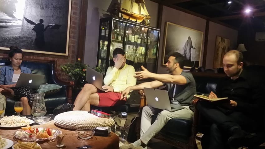 We hosted the workshop in an amazing “speak easy” style private venue in OCT Loft (Meir’s great recommendation). The venue helped everyone get more comfortable with a sofa area and a dining table both in the same room with private bathroom. Each attendee signed an NDA to protect themselves when disclosing personal information to us. We wanted to make sure the trust was there and also to make sure everyone was taking this serious and felt comfortable.