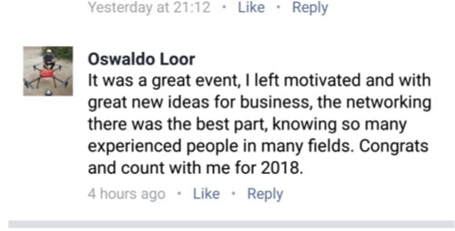 “I’m Roland from Taiwan doing different b2b ecommerce trade. Here I’m get a lot of actionable information. The information is really that good that I missed the after party yesterday. I went to the hotel and implemented the ideas. Like Brian Tracy said is that you take action.