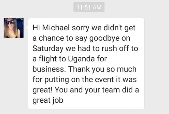 Thanks so much.As a start-up we really get great advice on business development,marketing strategy and event holding from Michael.We do appreciate you being part of our journey.