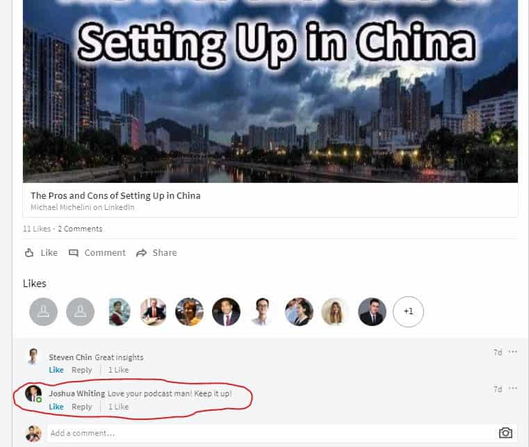 Michael is a seasoned entrepreneur and knows his way around building a business. It’s very valuable to speak with someone who knows the lay of the land here in China and